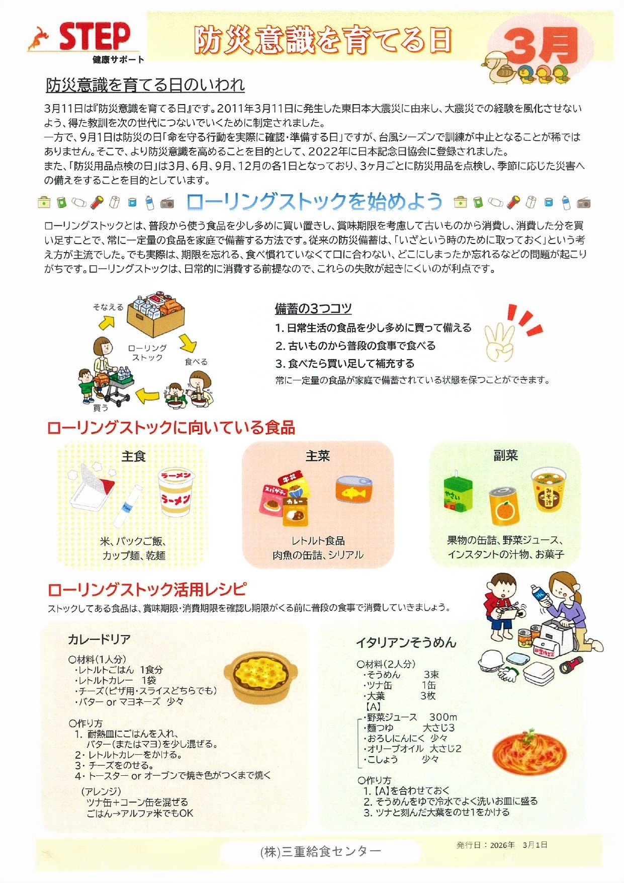 お便り 2026.02.25 「健康サポートSTEP」便り 2026年3月号発行しました 「健康サポートSTEP」便り 2026年3月号発行しました。 今月のテーマは「防災意識を育てる日」です。 お知らせ一覧へ戻る